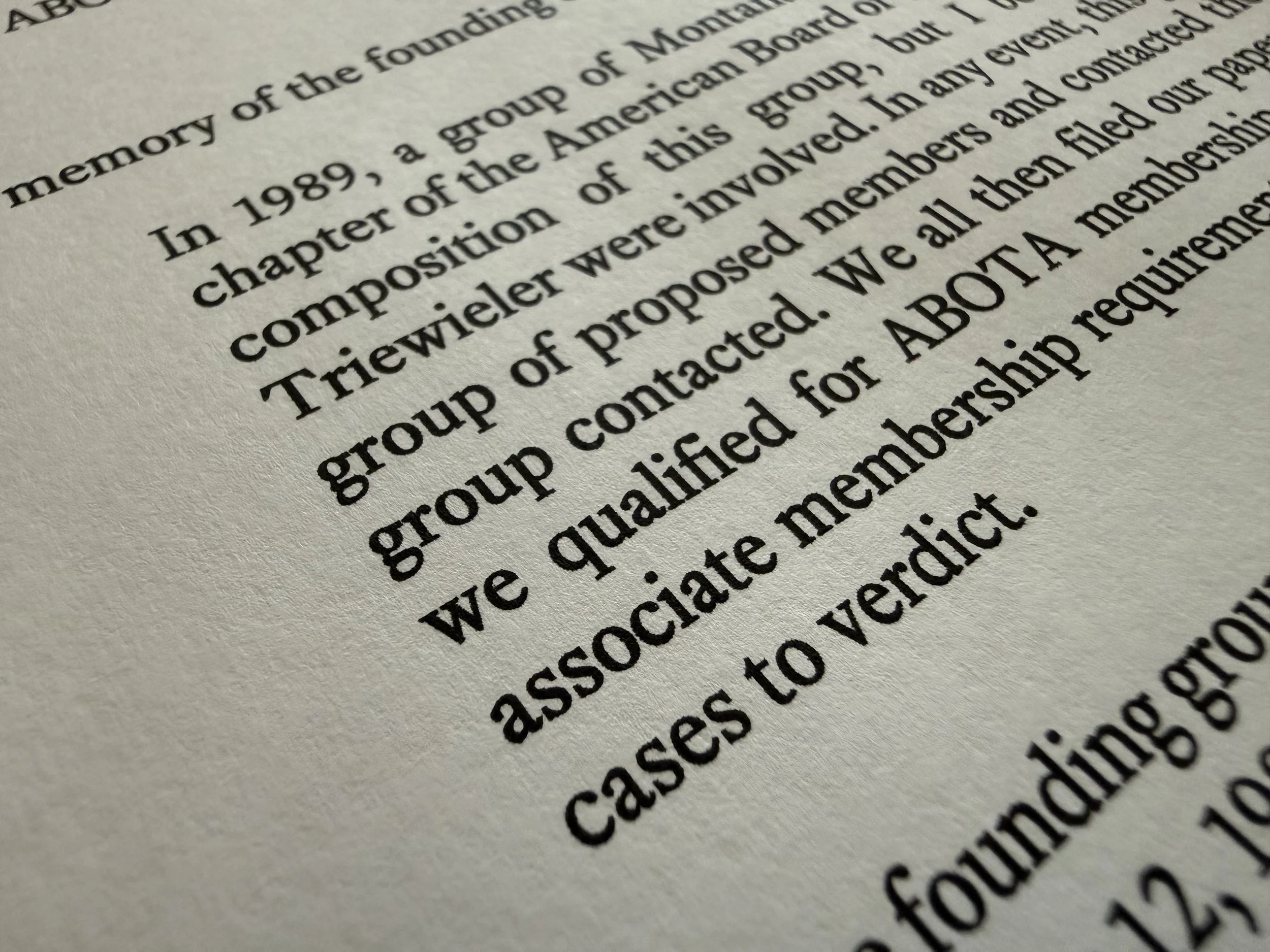 we qualified for ABOTA membership. As I recall, the minimum associate membership requirement was having tried at least twenty cases to verdict.
